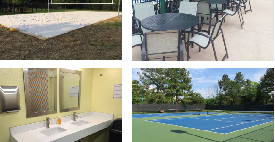 This year has been focused on the pool area with new tables, umbrellas, chairs, sinks, countertops, restroom tiling, and restroom lighting. Additionally, the volleyball court and tennis courts have been resurfaced and repaired. The HOA Board goes through extensive efforts to balance the community interests (per your previous survey responses and direct feedback), competitive bids, and seeking the best value in using your assessment fees.